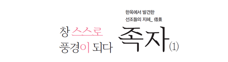 ‘창 스스로 풍경이 되다’는 창이 풍경에 틀 짜기를 가하고 풍경을 재단하는 일을 하다 풍경에 취해 스스로 풍경이 되어버린 형국이다. 창 스스로가 하나의 풍경요소, 즉 인공적 풍경요소가 된 것이다. 이렇게 되는 데에는 창살문양과 창호지의 역할이 절대적이다. 창살문양은 창을 풍경요소로 둔갑시키는 일차적 역할을 한다. 문양 자체가 강한 조형형식을 띠면서 액자 이상의 기능을 갖게 되기 때문이다. 액자의 기능은 틀 짜기를 통한 풍경장면의 정리가 기본인데 이것을 넘어서 풍경요소의 기능인 조형 형식을 가지게 된다는 말이다