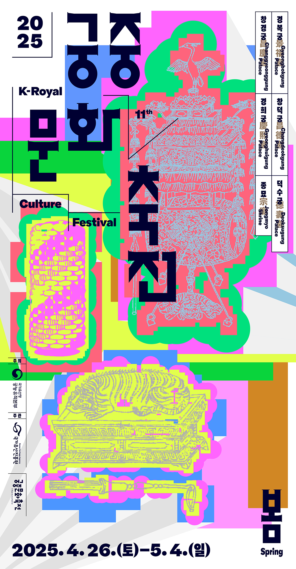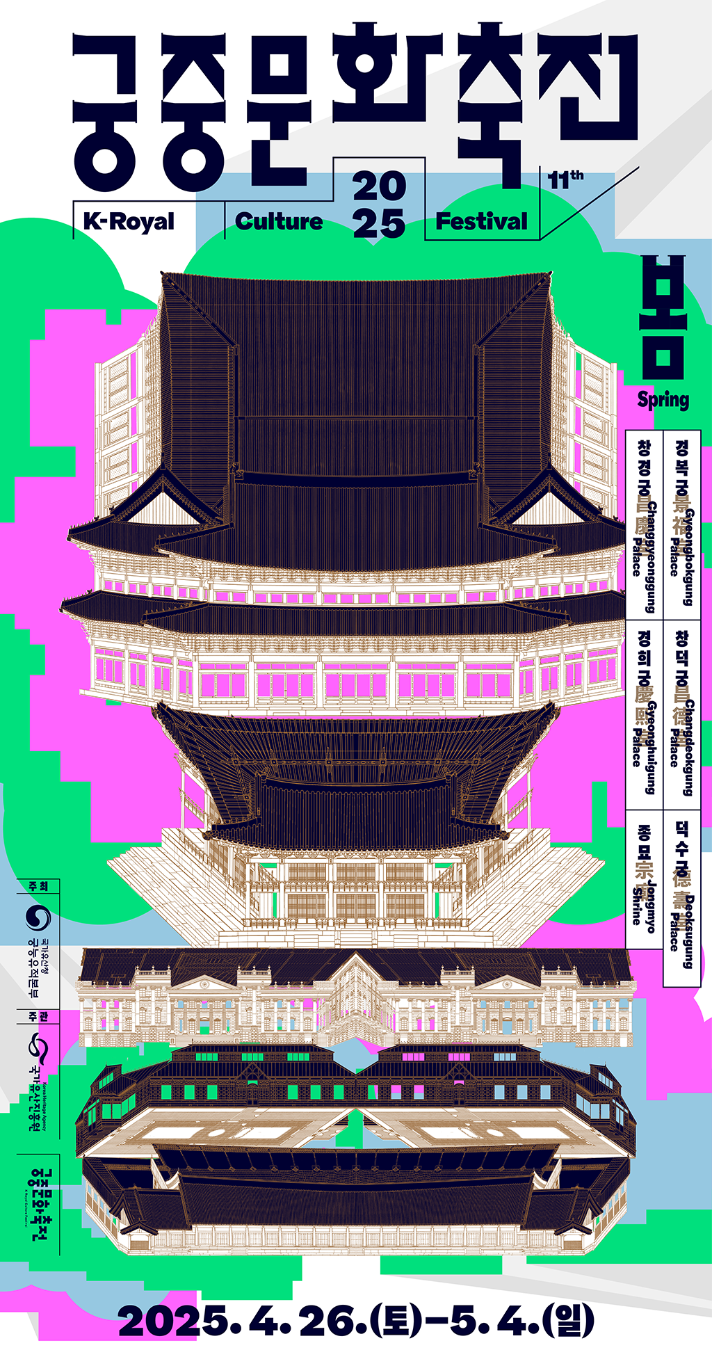 봄 Spring 궁중문화축전 2025 K-Royal Culture Festival. 2025.4.26.(토) - 5.4.(일) 경복궁Gyeongbokgung Palace, 창덕궁 Changdeokgung Palace, 덕수궁 Deoksugung Palace, 창경궁 Changgyeonggung Palace, 경희궁 Gyeonghuigung Palace, 종묘 Jongmyo Shrine. 주최:국가유산청 궁능유적본부, 주관:국가유산진흥원. 궁중문화축전