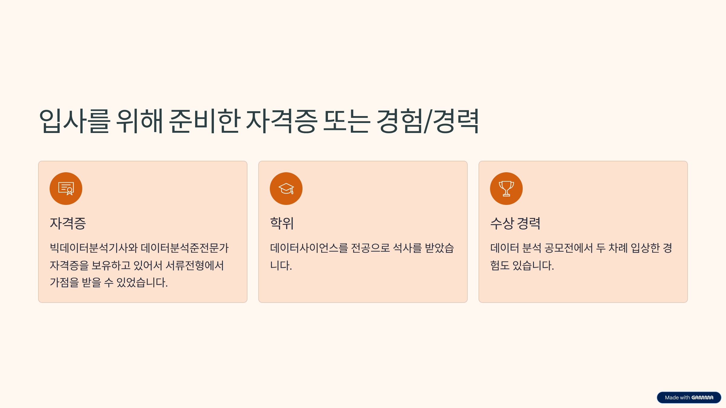 3. 입사를 위해 준비한 자격증 또는 경험/경력