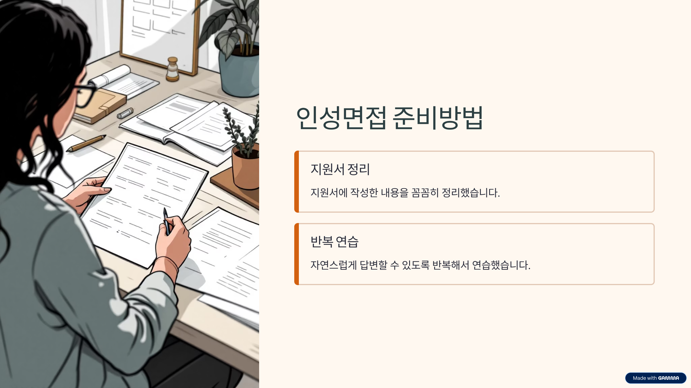 - 반복 연습: 자연스럽게 답변할 수 있도록 반복해서 연습했습니다.