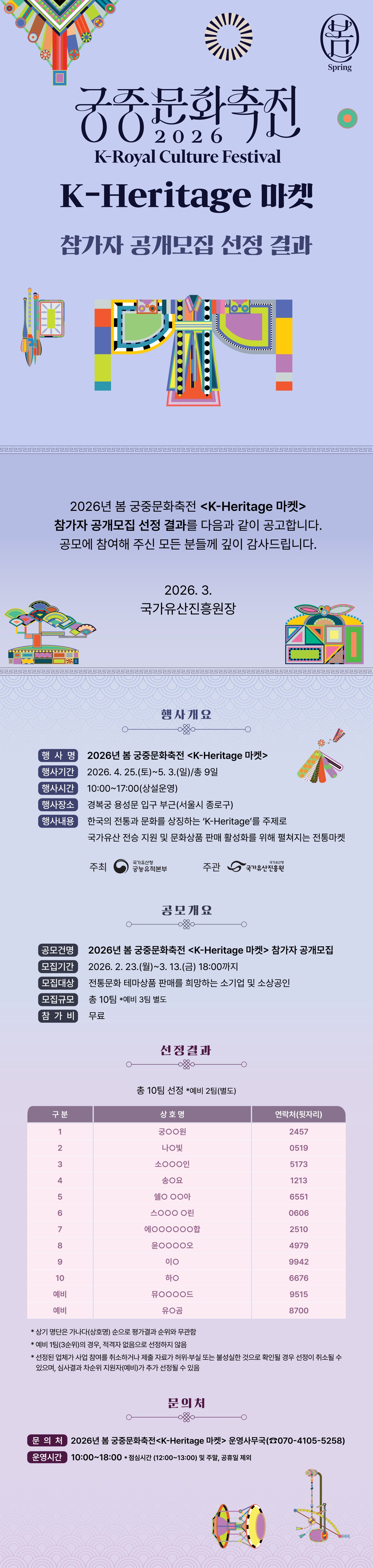 가. 문의처: 2026년 봄 궁중문화축전 <K-Heritage 마켓> 운영사무국 (070-4105-5258)