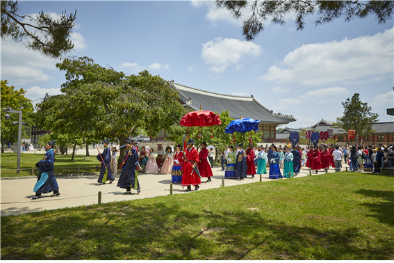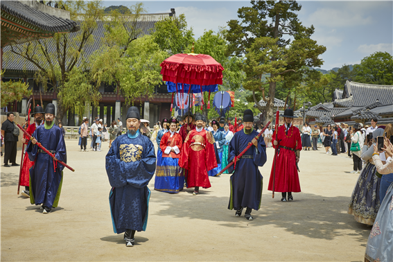 ‘왕가의 산책’은 국왕, 왕비, 왕세자, 세자빈이 산선시위와 군사의 호위를 받으며 궁궐을 산책하는 모습을 재현한 행사입니다. 조선시대 경복궁의 한 장면 속을 함께 거닐어 보는 건 어떨까요?